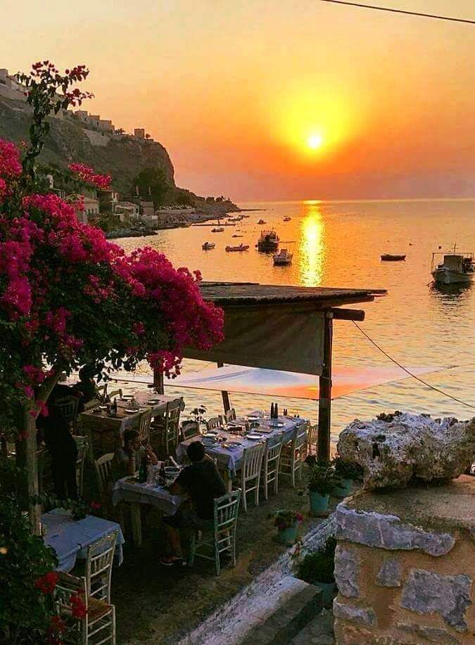 Tänkte först spontant och i hastigt mod att det är ju Panteli och våran favorittaverna vid stranden. Men sen insåg jag att det inte stämde. Där ar ju ingen strand mellan tavernan och vattnet, och liten bit sandstrand ska där ju vara om det är där. Och solnedgången kan man ju inte heller få i sådan bild om man är i Panteli.