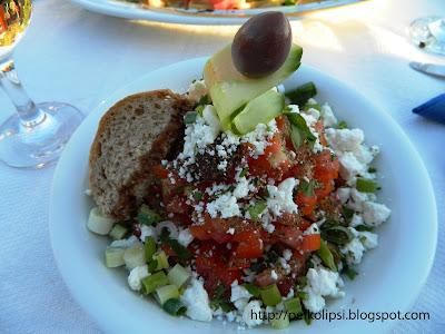 En god sallad som man kan bli bladig av den åt vi på Hydra hos Christina o Manolis . Lolis