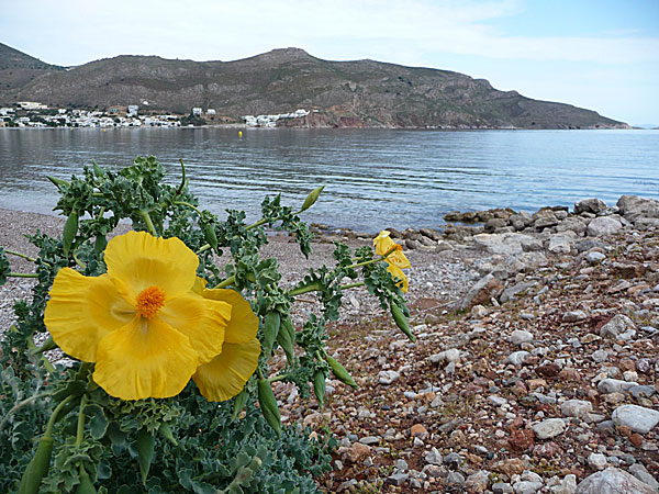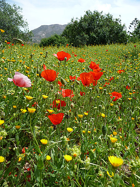 Vid den lilla fiskehamnen Agios Andonis blommar ängarna också.