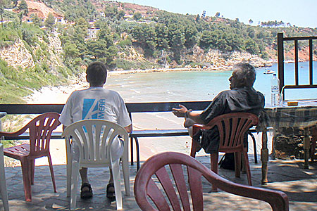 Lunch vid Chrisi Milia . Mannen vid sidan säger till mig:"