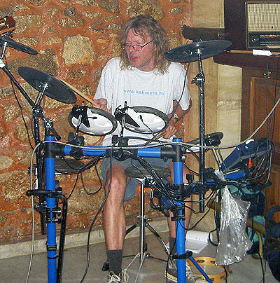 Calle spelar trummor 11 sept 2004, Cafe Vasiliko, Rethymno.