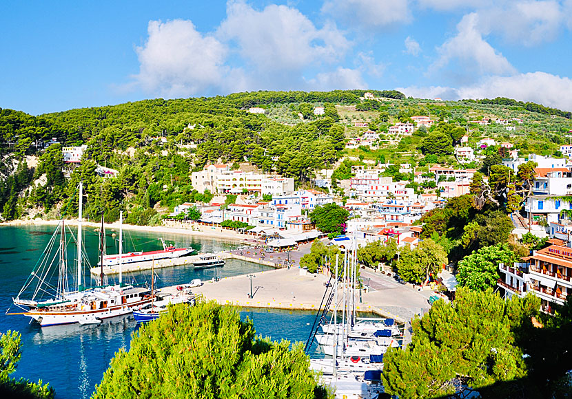 Många seglar till Alonissos och de parkerar då i den lilla marinan till vänster.