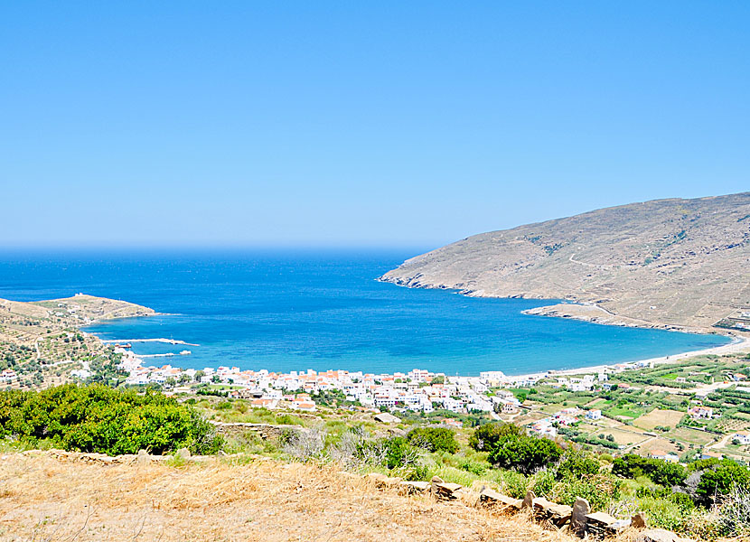 Ormos Korthiou och Milos beach på östra Andros.