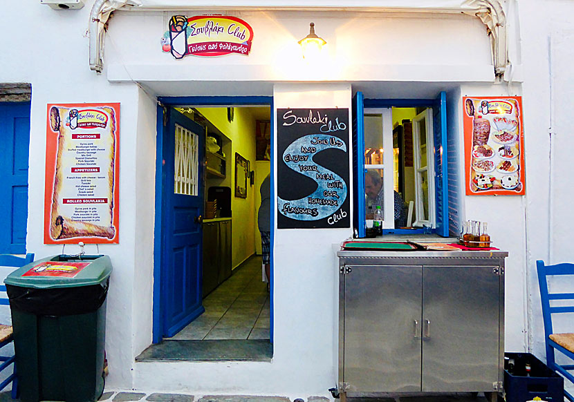 Att välja ut någon speciell taverna är svårt, menyerna är snarlika (med undantag från Nikos) och de flesta serverar god mat. Man får gå efter vad man tycker ser trevligast ut. Och det gör i princip alla så det är verkligen svårt att välja. Det finns även två gyrosställen som serverar mycket goda gyros.
