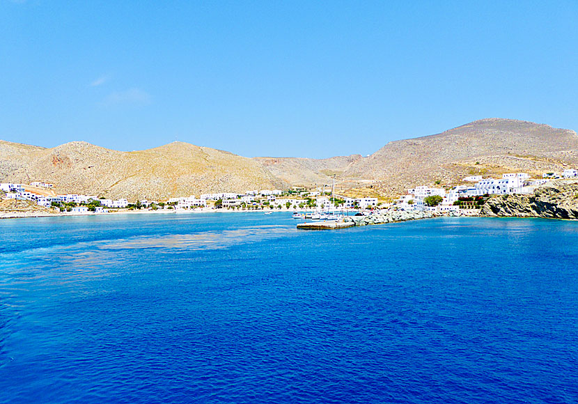 Klapperstenstranden i hamnen är okej, kanske lite väl vassa stenar som gör det svårt att komma i vattnet. Bättre stränder finns alldeles i närheten, exempelvis Vardia som ligger på andra sidan berget till höger om hamnpiren (näsan mot land).