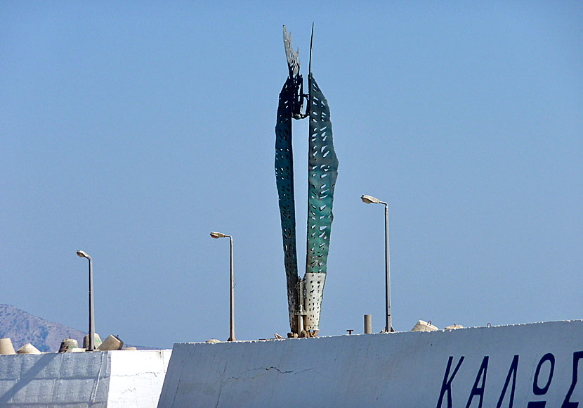 Minnesmonument över Ikaros i Agios Kirikos hamn.