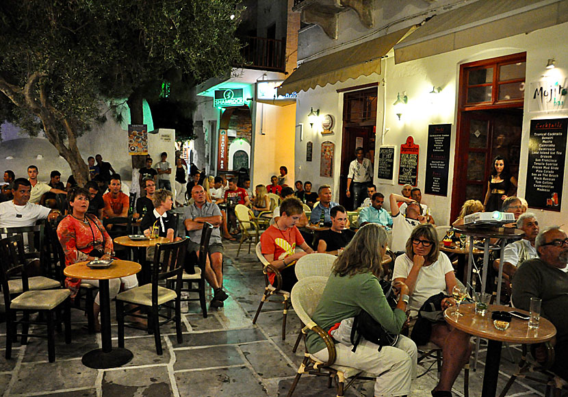 Det finns väldigt många barer längs huvudgatan i Chora.
