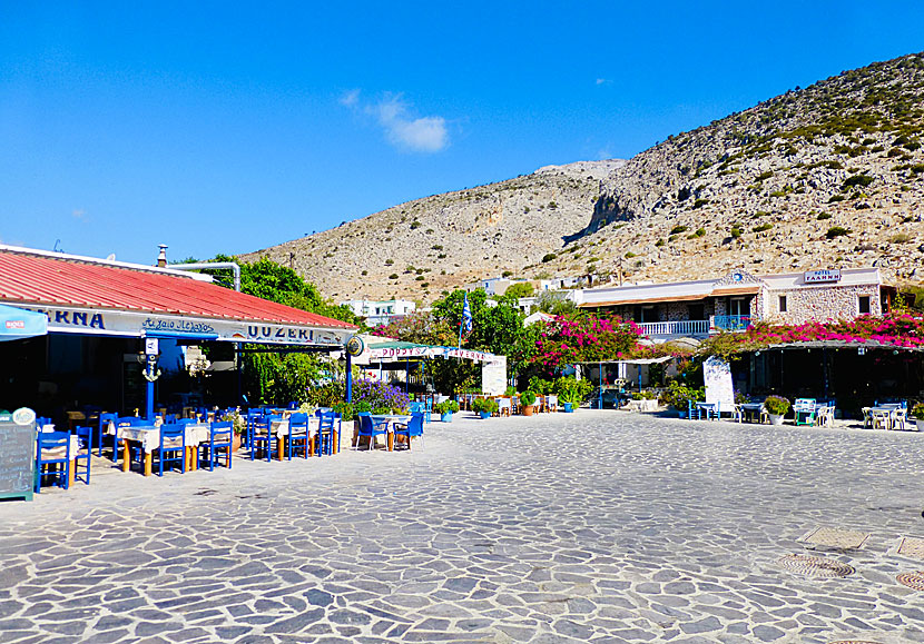 Från Rina leder en fjordliknade vik ut mot det blå havet, här samsas fiskebåtar och segelbåtar med utflyktsbåtar från Kos. Där fjorden börjar finns en stenkaj med badstegar. Vattnet är ljuvligt att bada i.