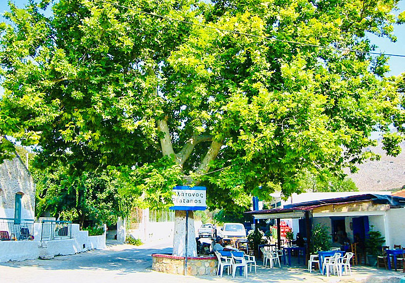 Den lilla byn Platanos och det stora platanträdet som gett byn dess namn.