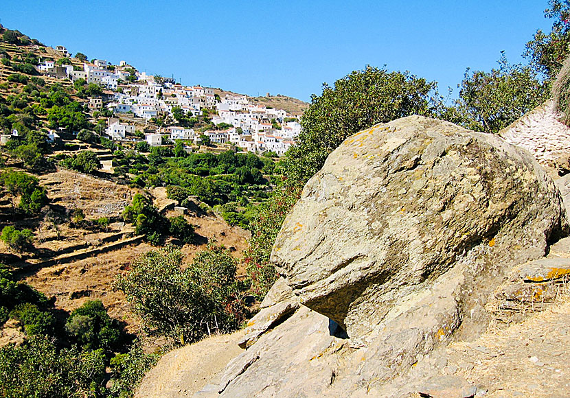 Det skrattande lejonet på Kea. Chora syns i bakgrunden.