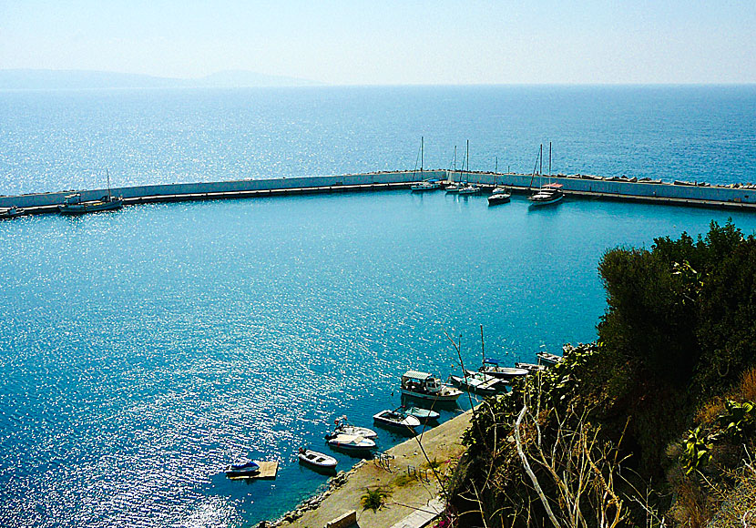 Byn är byggd på kullar ovanför fiskehamnen, utsikten över Libyska havet är mycket fin. Nedanför byn ligger en ganska lång strand av hygglig kvalité. Stranden är tvådelad och skiljs åt av en liten bäckfåra.