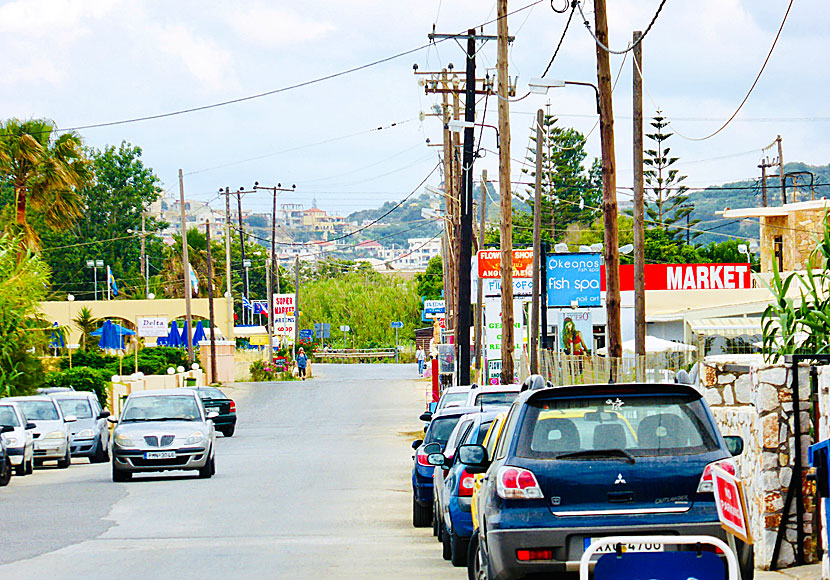 Här ligger flera stora hotell och flera av dem är All Inclusive hotell. Stranden är väldigt lång och består av småsten. Det går att gå längs med stranden till både Maleme och Platanias. Går du till Platanias får du hoppa över, eller plumsa i, floden som rinner ut på stranden.