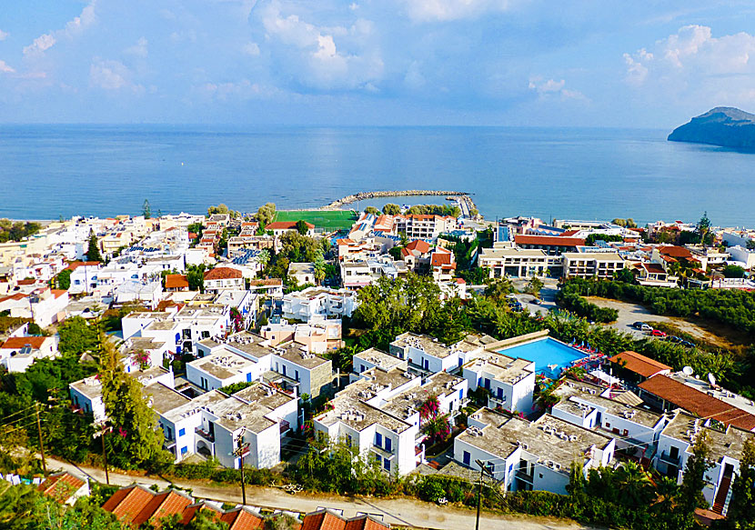 Platanias sett från Old Platanias. Ön Theodorou rakt fram och Agia Marina till höger.