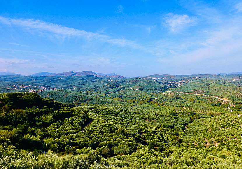 Trakten söder om Kolymbari är full av olivträd. Kör upp till grottkyrkan Saint John the Hermit Cave som ligger ovanför byn Marathokefala, som i sin tur ligger ovanför byn Spilia några kilometer söder om Kolimbari. Kyrkan är väl värd en titt, men det är utsikten över dalen som är den stora attraktionen. Man får nästan svindel när man tittar ut över dalen med alla olivträd.