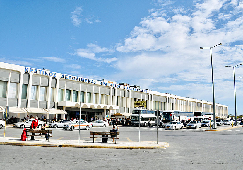 Flygplatsen ligger cirka fem kilometer öster om Heraklion. Från flygplatsen kan man åka flygbuss eller taxi in till staden. Hittar du inga flygstolar till Heraklion kan du flyga till Chania, och vidare därifrån med buss, eller hyrbil.