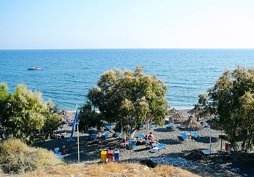 Stranden i Mirtos är smal och består av småsten uppblandat med en portion sand. Man kan hyra solstolar och parasoll och det finns även en del vattensportsaktiviteter. Stranden och restaurangerna ovanför får mig att tänka på andra stränder med liknade utseende. Jag tänker då första och främst på stranden i Matala på Kreta och på stranden i Skala Eressou på Lesbos. De är alla stöpta i samma form.
