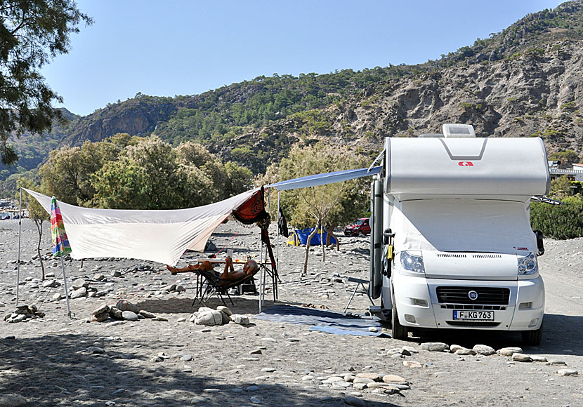 Det är vanligt med husbilar och vildcamping ovanför stranden.