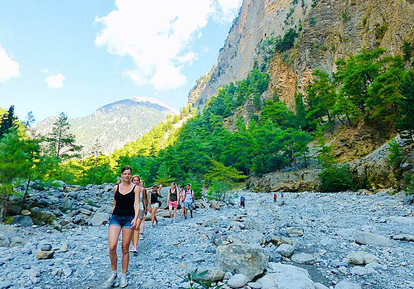 Bussarna kommer fram till ravinen tidigt på morgonen och då kan det vara kallt. När vi var här senast var det bara åtta grader. Något att äta måste du också ta med dig. Det finns inget att handla förrän du kommer ner till Agia Roumeli. Sist, men inte minst, behöver du ett par riktigt bra skor. Det måste inte vara vandrarkängor, vi gick med vanliga trekkingskor, och det gick hur bra som helst. Är du rökare får du hålla dig, rökning är nämligen förbjuden utom på särskilda ställen.
