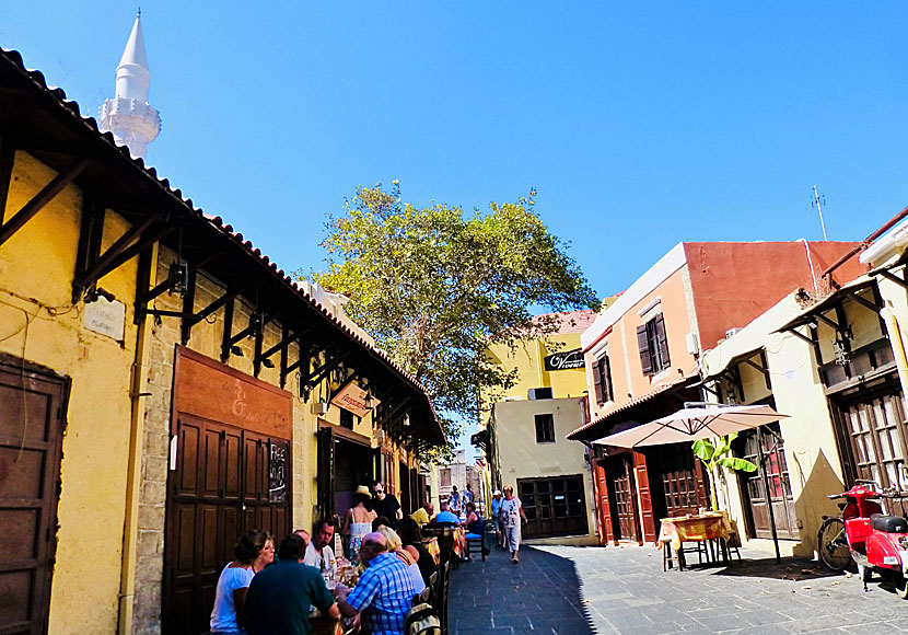 Sevärdheter man inte bör missa är riddargatan, stormästarens palats, de judiska och de turkiska kvarteren, moskéerna, klocktornet och vallgraven. Det absolut bästa sättet att se och lära känna gamla stan är att gå runt på måfå. Man bör ha gott om tid på sig, mycket vatten och en bra karta. Som sagt, om du vill komma bort från turistkvarteren kan jag rekommendera de södra delarna av stan. Här bor fortfarande många greker och det grekiska vardagslivet är påtagligt. Följ en smal gränd tills den tar slut och byt sedan till en annan gränd. Var inte rädd för att gå vilse, ut kommer du alltid. Eller gå en vandring uppe på ringmuren så garanterar jag att du kommer se gamla stan med helt nya ögon.