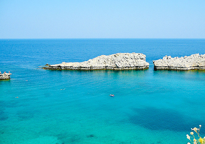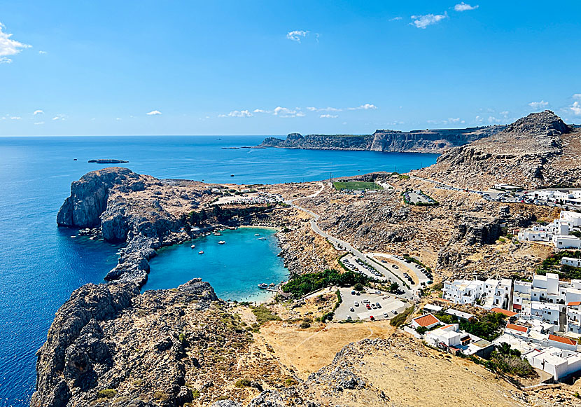 Agios Pavlos bay sett från Akropolisklippan ovanför Lindos.