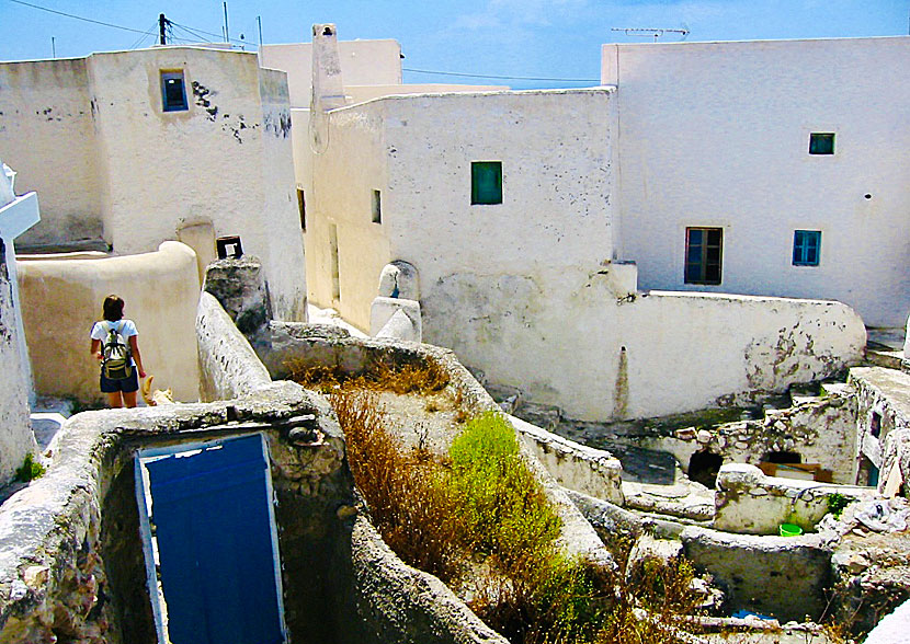 Förutom att Emporio är en turistfri oas finns här ett par intresseväckande sevärdheter också. Via de smala urgamla gränderna som leder upp till toppen av byn är det lätt att gå vilse. Många hus ligger i ruiner, några håller på att renoveras. I en av gränderna ligger ett litet kafenión med fin inredning där du kan äta lunch eller ta något att dricka. Faktiskt ett av de gulligaste kafenión jag har sett, fem bord ute och två inne.