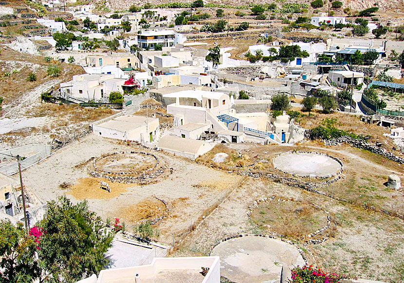 Emporio är den största byn på Santorini. Spektakulära Kastelli till vänster i bild.