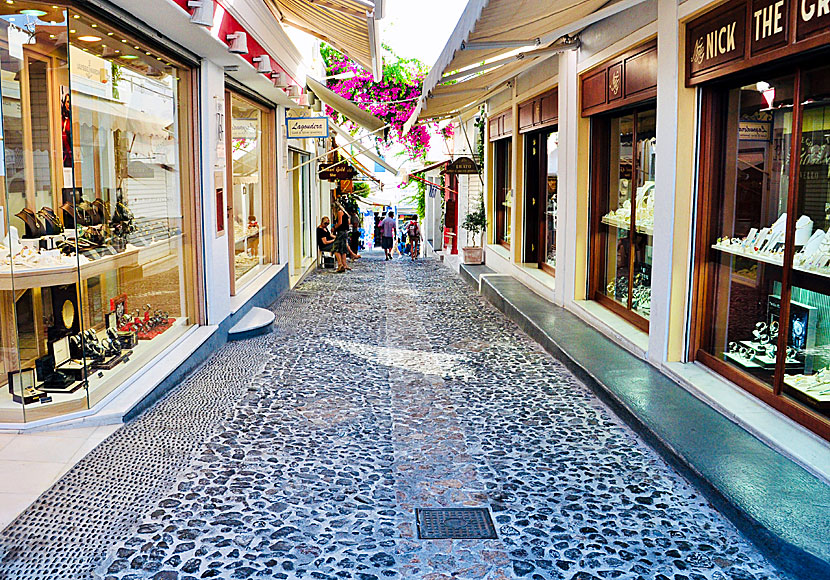 Några av de många juvelerarbutikerna i Fira.