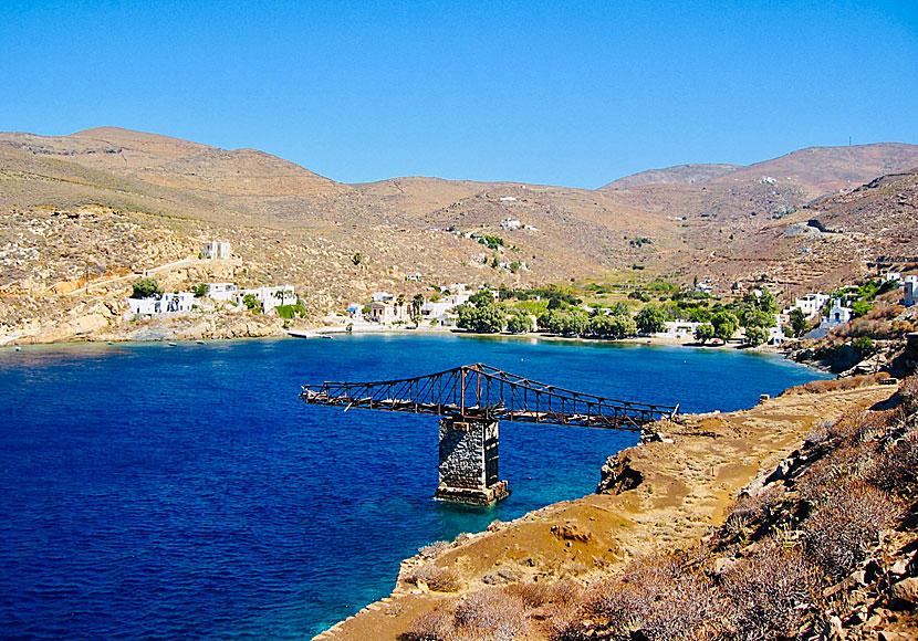 Kanske är det bara jag som fascineras av gamla nedlagda industrier? Vi återgår till stranden i stället. Stranden i Megalo Livadi är en trevlig bekantskap när det inte blåser, då är det ljuvligt att simma ut i den vackra bukten, kanske spana hungrigt in mot tavernorna vars bord står i sanden under de skuggande tamariskerna, och fundera över vad man ska äta till lunch.