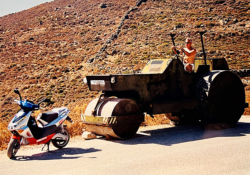 Jag föredrar att hyra moped, andra föredrar att hyra fyrhjuling. Bilden är från Apokofto beach.