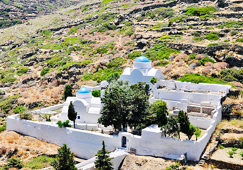 Nedanför Kastro ligger två vackra kyrkor omgivna av en kyrkogård.
