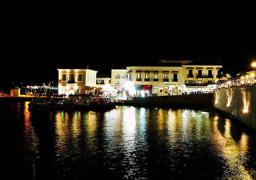 Innan vi gick hem skulle vi ta några bilder som skulle symbolisera nattlivet på Spetses. När jag skulle ta en bild över den lilla hamnen nedan kände jag att något kröp på ena benet. Först trodde jag att det var en katt som strök förbi, men det kändes som något annat.