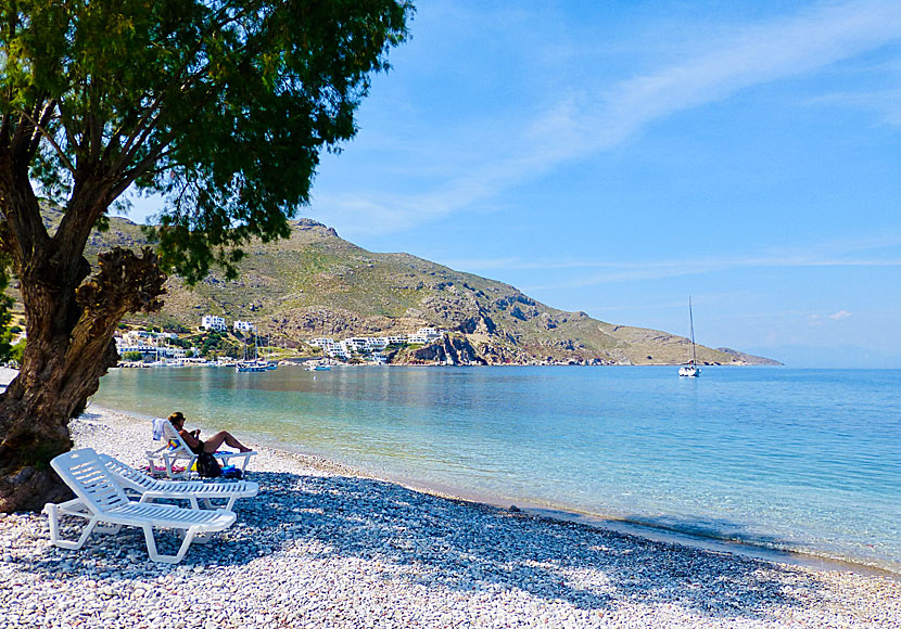 Livadia är Tilos största by sett till antal invånare (480 pers) och öns stora turistort och hamn. Byn ligger i en kolossalt vacker och vidsträckt bukt. Inseglingen till hamnen är bedårande: till vänster det månlika och trädlösa berget, rakt fram sträcker den långa klapperstenstranden ut sig och till höger kommer den lilla vita byn allt närmare. Det spritter i benen av längtan att få kliva av båten.