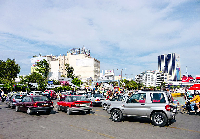 Bussresan till Pireus tar cirka 1 ½ timme, men resan kan ta både kortare och längre tid beroende på hur trafiken är. Från slutstationen i Pireus har du nära till resebyråer, och till piren där bland annat Blue Star Ferries färjor avgår. TaxiTaxistationen ligger också utanför ankomstterminalen. Du kan inte missa den, för där brukar stå hundratals gula taxibilar på kö. Med taxi tar det mellan 40-60 minuter till Pireus. Priset ligger på mellan 50-60 €. Fråga om priset innan du sätter dig i taxin. Be att få åka till Blue Star Ferries terminal så har du nära till det mesta.