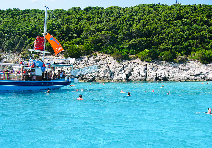 Utflyktsbåtar till Antipaxi, Blue Cave och Parga utgår från hamnen Gaios.