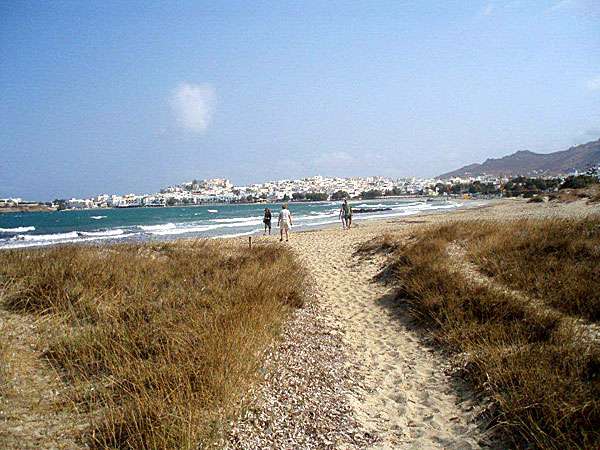 S:t Georgiosstranden med Naxos stad i bakgrunden.