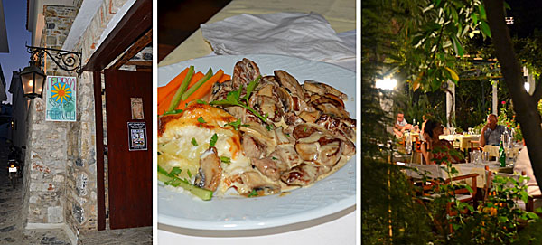 På vägen ner gick vi till restaurant Pevoroli och bokade ett bord inför kvällen. Pevoroli ligger uppe i gränderna i en liten trädgård med sina odlingar runtomkring. Där åt vi underbart god mat i en mysig miljö senare på kvällen.